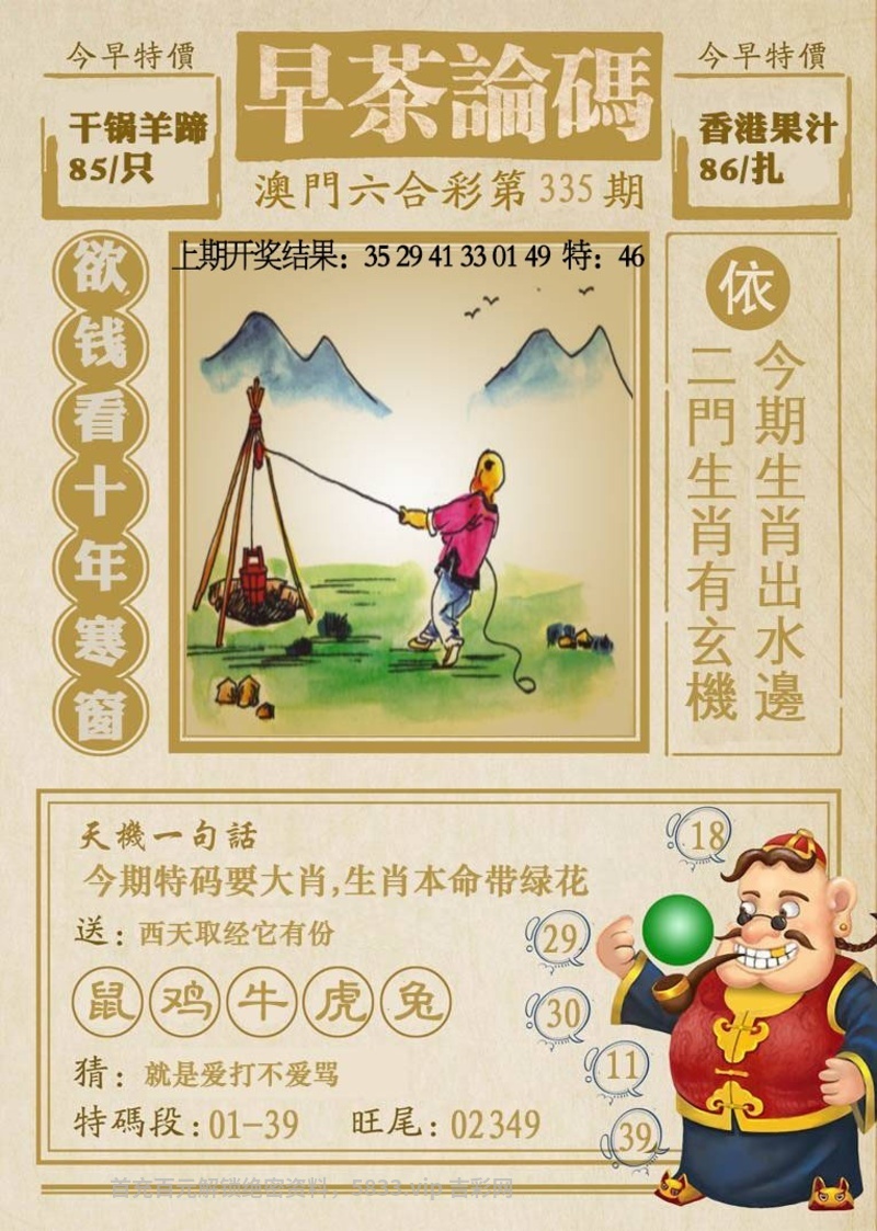 | 334期:九肖 | 羊虎鼠鸡蛇猪猴马牛 | 开:猴46 |